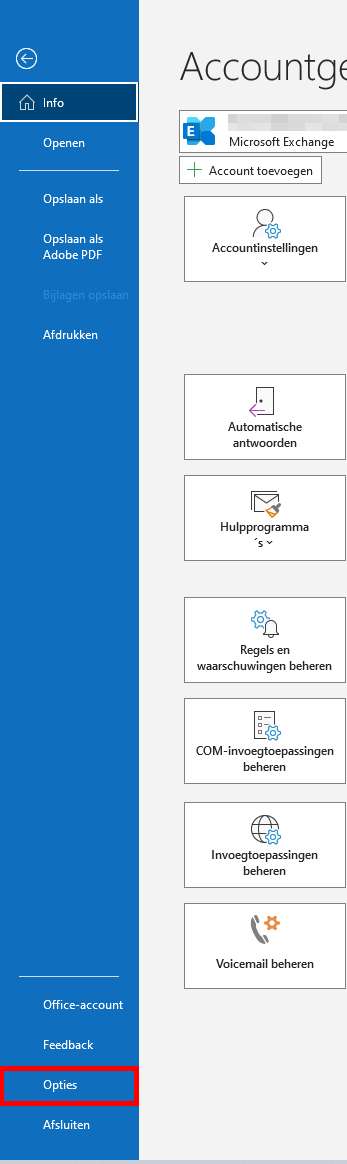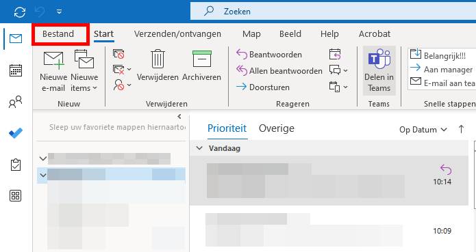 Als je outlook open hebt staan ga je links boven naar `Bestand`