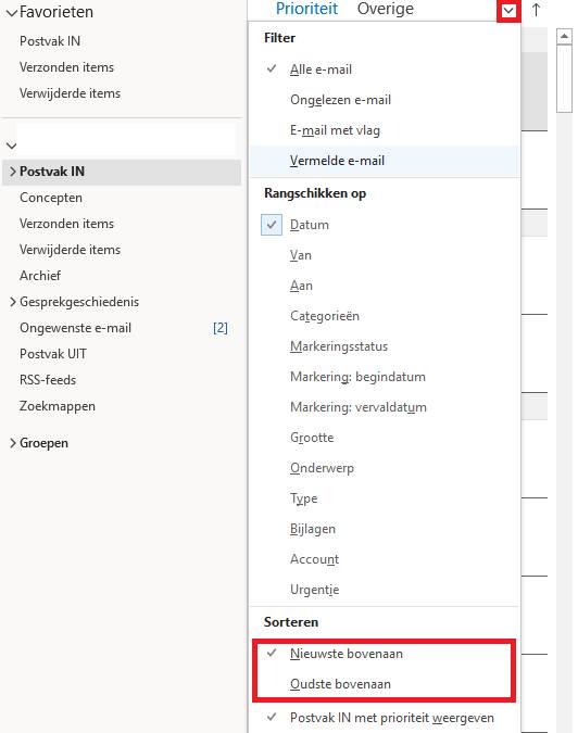 Selecteer bij de gewenste mailbox het onderwerp ‘Postvak in’.