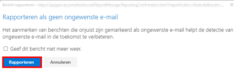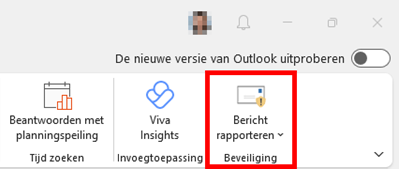 - Selecteer een e-mail binnen outlook, klik daarna op `Bericht rapporteren` rechtsboven.