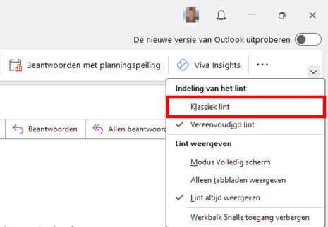 Zie je de knop niet dan moet je de klassieke lint aanzetten via: