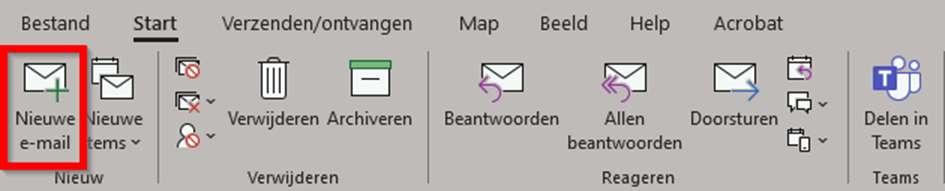 1: Als u Outlook heeft geopend klik dan op de knop Nieuwe e-mail om een nieuwe