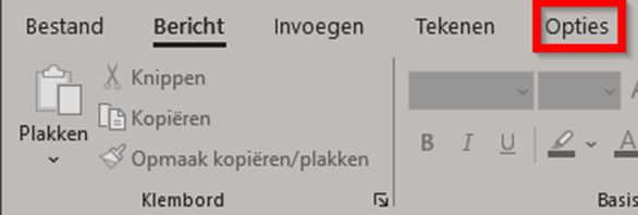 Stap 2: Klik vervolgens boven in de balk op de knop Opties.