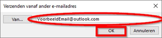 Vul hier het gewenste e-mailadres in vanaf waar u uw e-mail wilt versturen. Klik