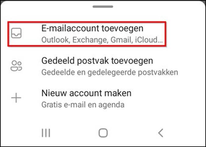 Daarna op `E-MAILACCOUNT TOEVOEGEN`
