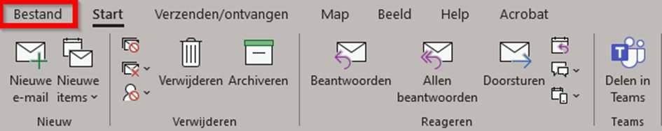 Stap 1: Open Outlook en klik vervolgens linksboven op de