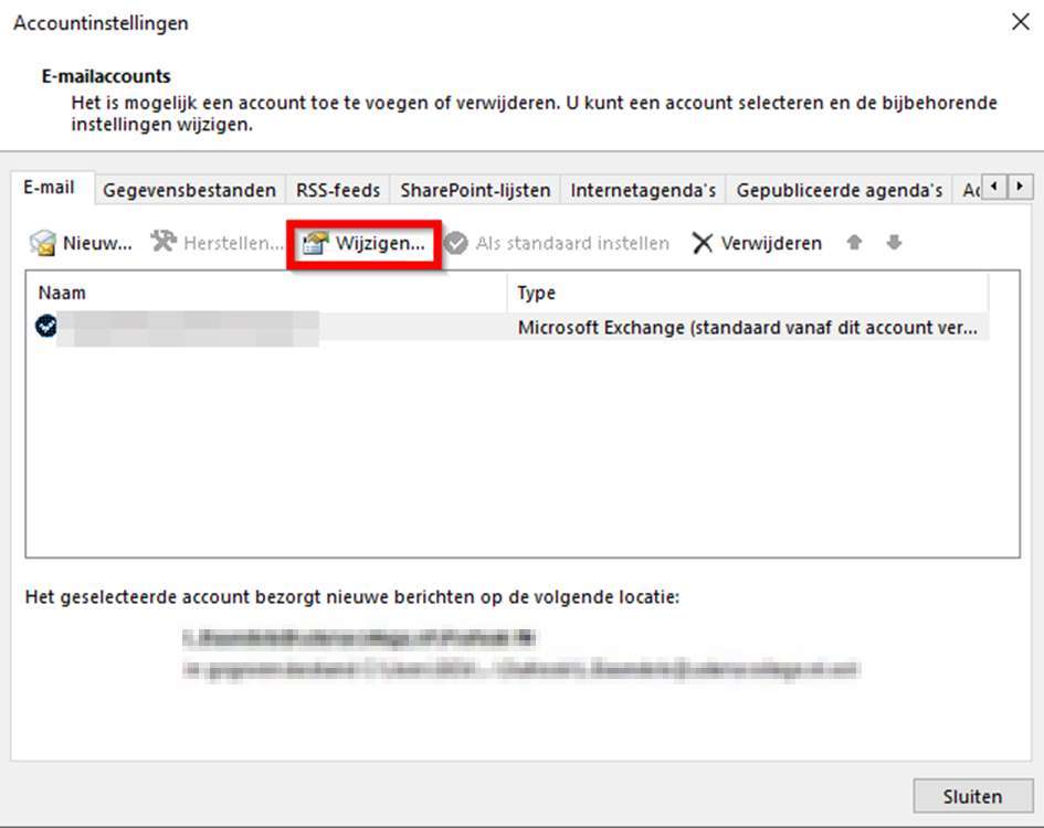 de nieuwe mailbox ertussen moeten staan. Zo niet dan moet je mogelijk Outlook