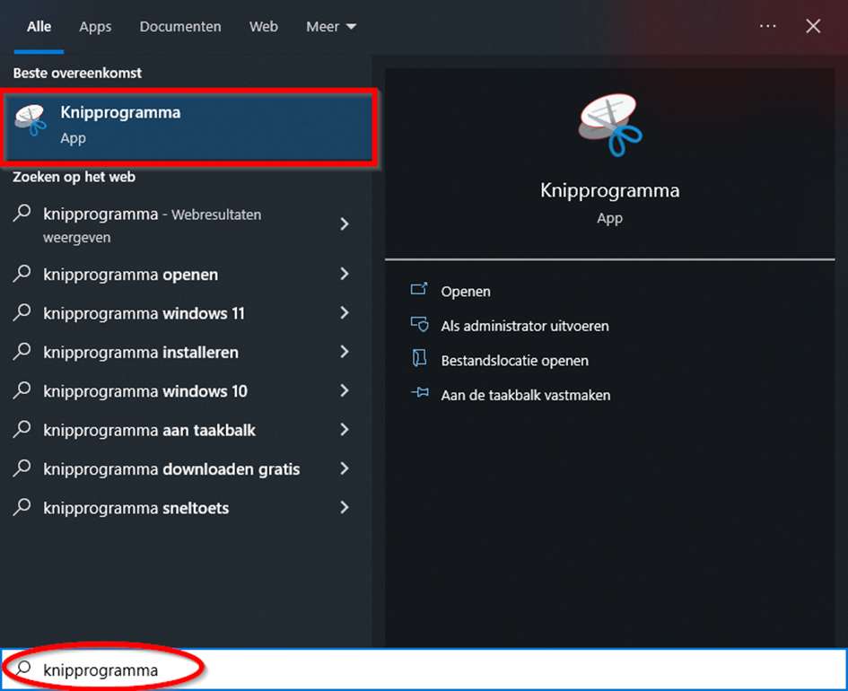 Stap 2: Vervolgens kunt u in de zoekbalk (Knipprogramma)