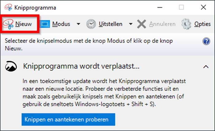3: Als het programma geopend is kunt u op de knop Nieuw klikken. Dan zal uw