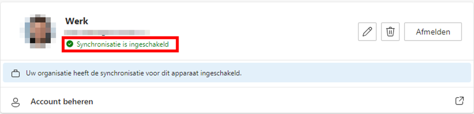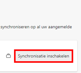 Niet groen? Ga dan naar `Synchroniseren` > `Synchronisatie inschakelen` > `Bevestigen`