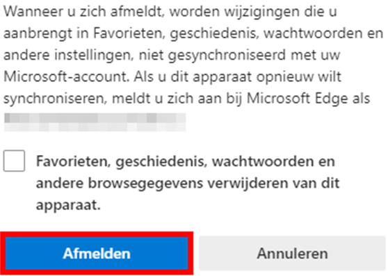 Nu moet je afmelden met jou oude account en inloggen met het nieuwe account: