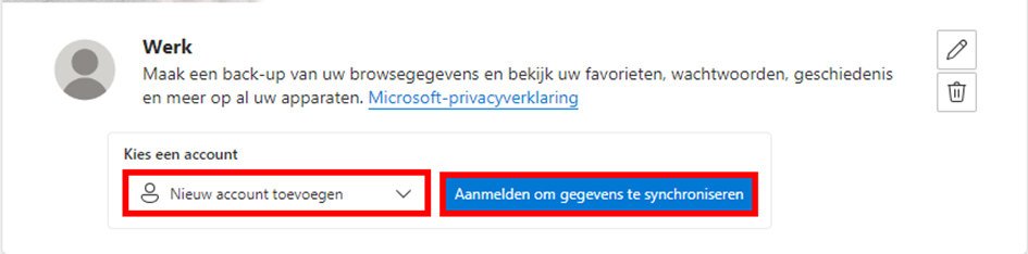 het veld `Kies een account` op `Nieuw account toevoegen` staat: